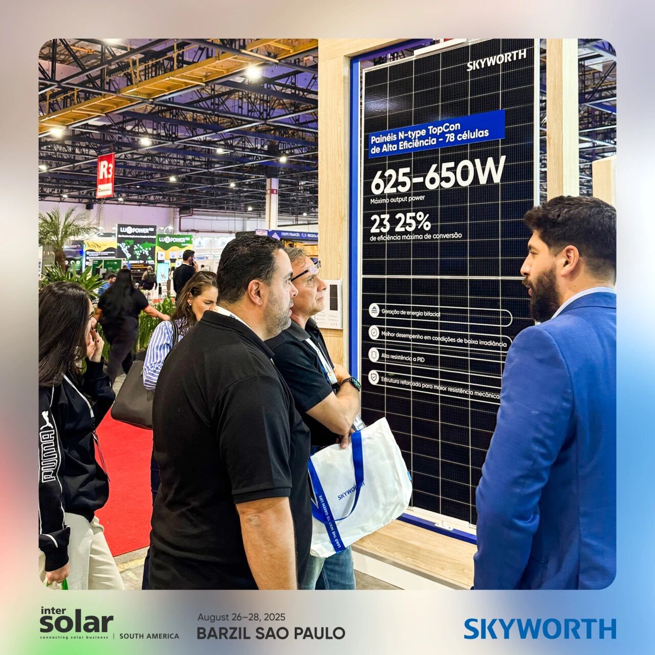 2025年8月26日至28日,创维光伏在巴西圣保罗举行的Intersolar South America 2025展会上,全面展示了最新的光伏创新成果。本次展会成为创维光伏深化在巴西合作、探索新机遇的重要平台,同时彰显了公司在推动拉丁美洲清洁能源发展方面的坚定承诺。