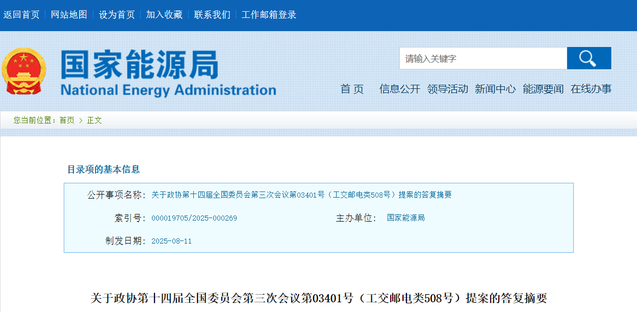9月3日,国家能源局公开关于政协第十四届全国委员会第三次会议第03401号(工交邮电类508号)提案的答复摘要。