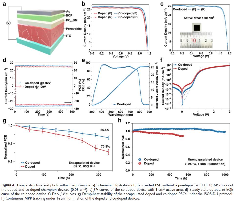 最终,采用该策略的倒置PSCs实现了26.64%的光电转换效率(认证效率26.34%),并在最大功率点连续光照1000小时后仍保持初始效率的98.5%。