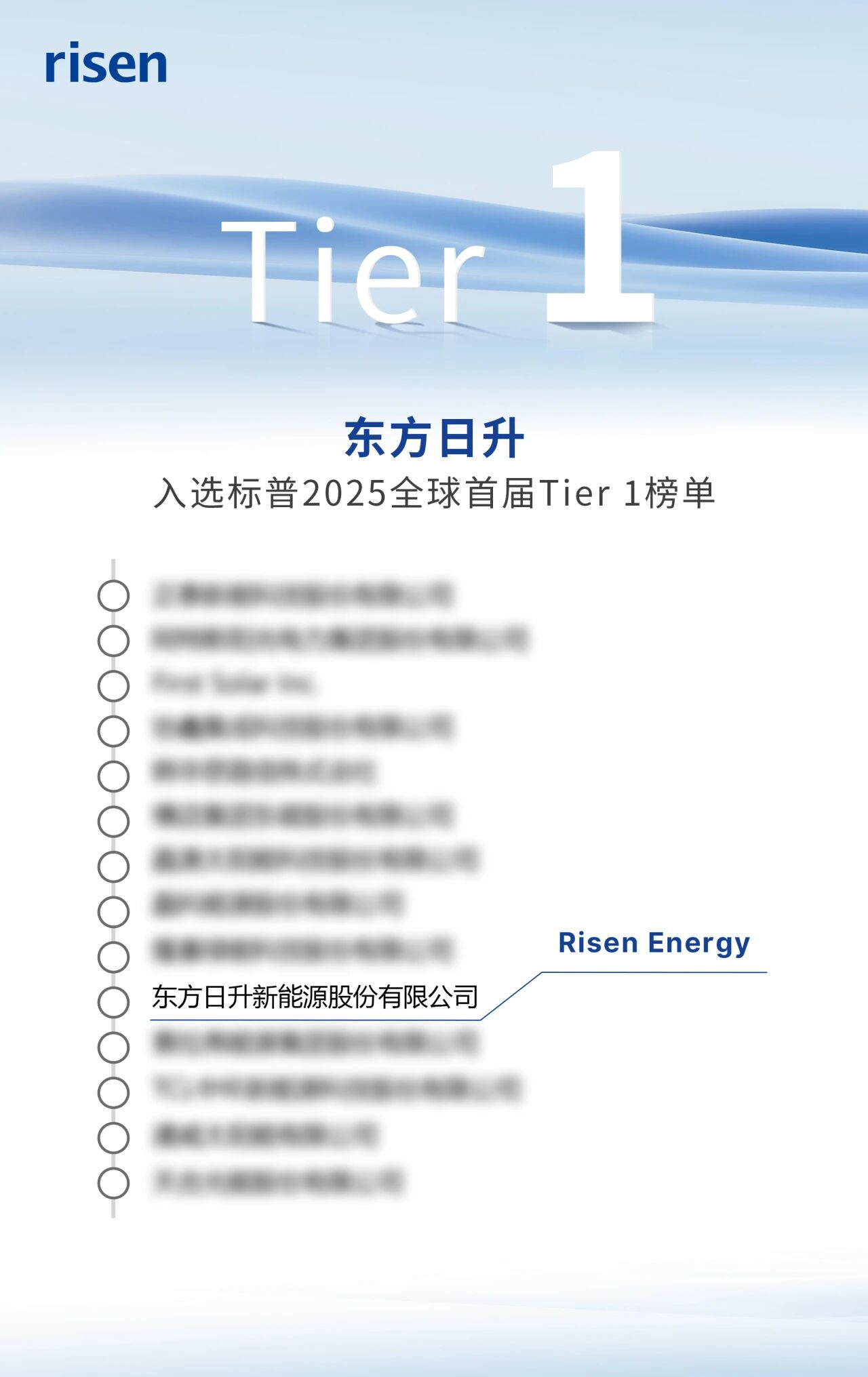 此次东方日升荣登标普全球光伏组件Tier 1榜单,不仅充分彰显了国际第三方机构对东方日升全球市场影响力与可持续发展实践的高度肯定,更标志着公司已具备为全球客户提供顶尖清洁能源整体解决方案的卓越实力。