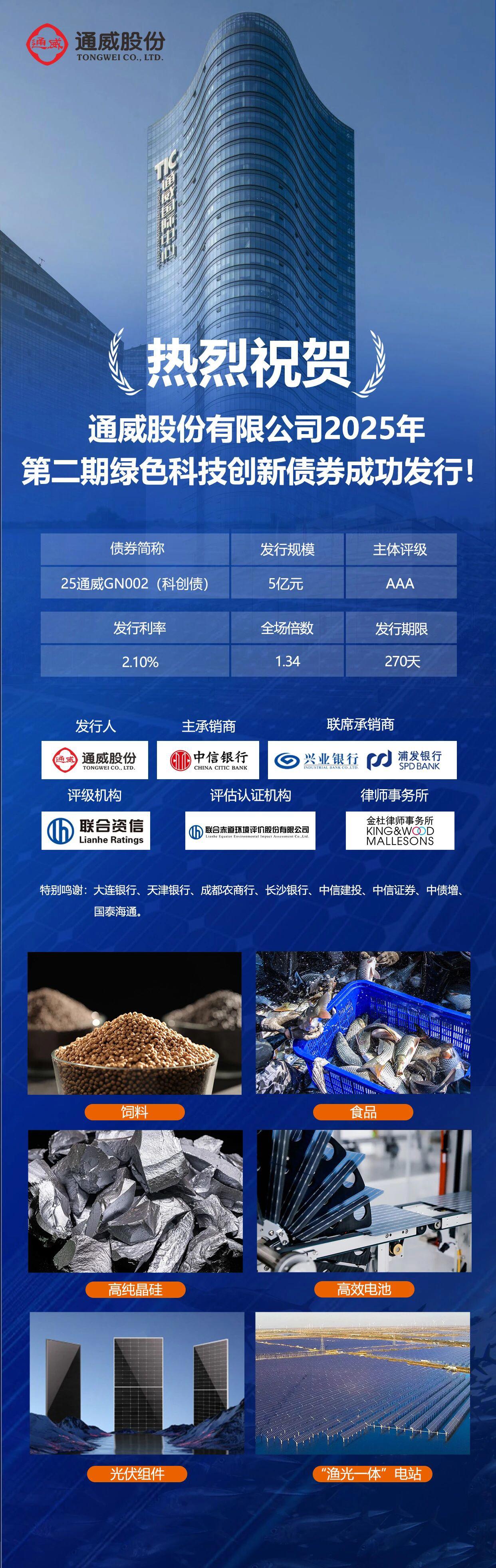 热烈祝贺!通威股份有限公司2025年度第二期绿色科技创新债券成功发行