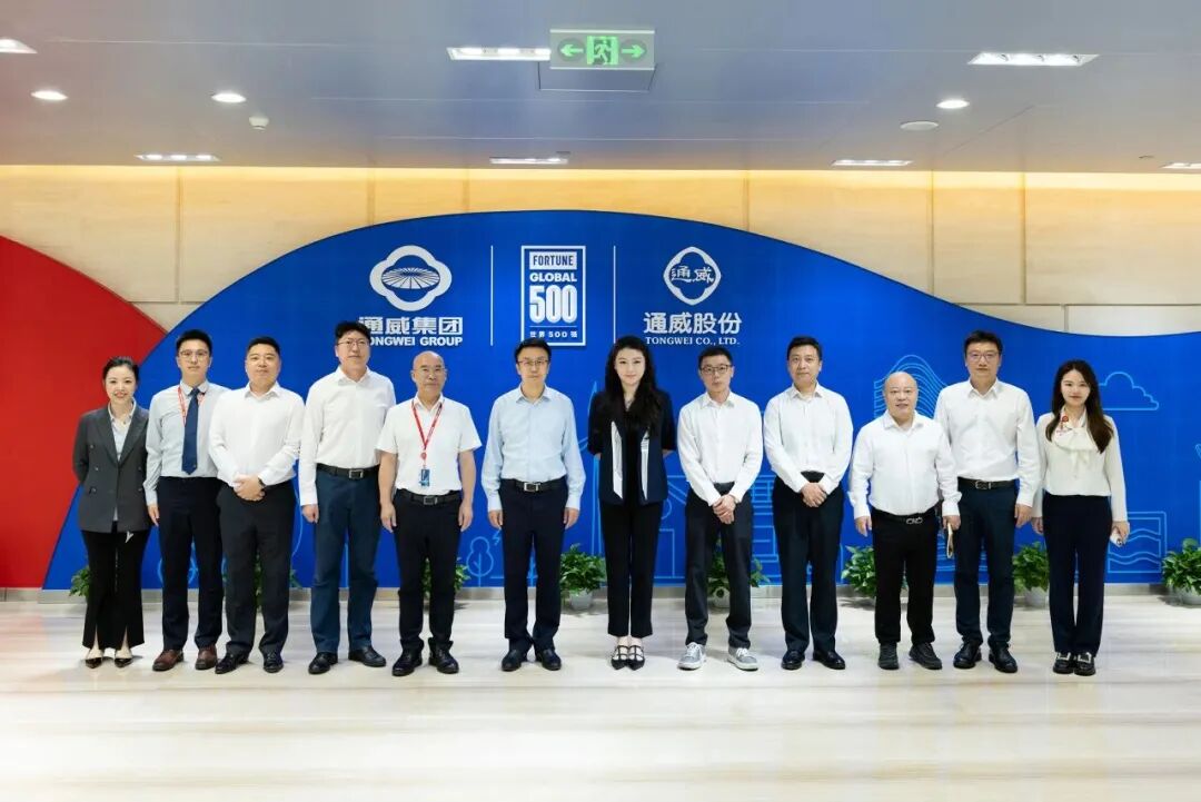 来宾一行首先参观了集团体验中心,详细了解了通威在绿色农业与绿色能源领域的产业发展成果,重点听取了公司在高纯晶硅、太阳能电池及组件、光伏电站等光伏新能源全产业链的布局情况,对通威在新能源领域的技术实力与产业规模表示高度认可。