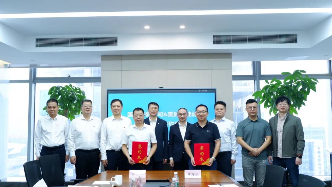 国能安徽综合能源公司党委书记、董事长汪学兵与美的新能源创新业务总监黄万才分别代表双方签署合作协议。国能安徽公司党委书记、董事长云天宝,合康新能副总经理兼美的新能源公司总经理刘意作为见证人,共同见证这一具有里程碑意义的时刻。
