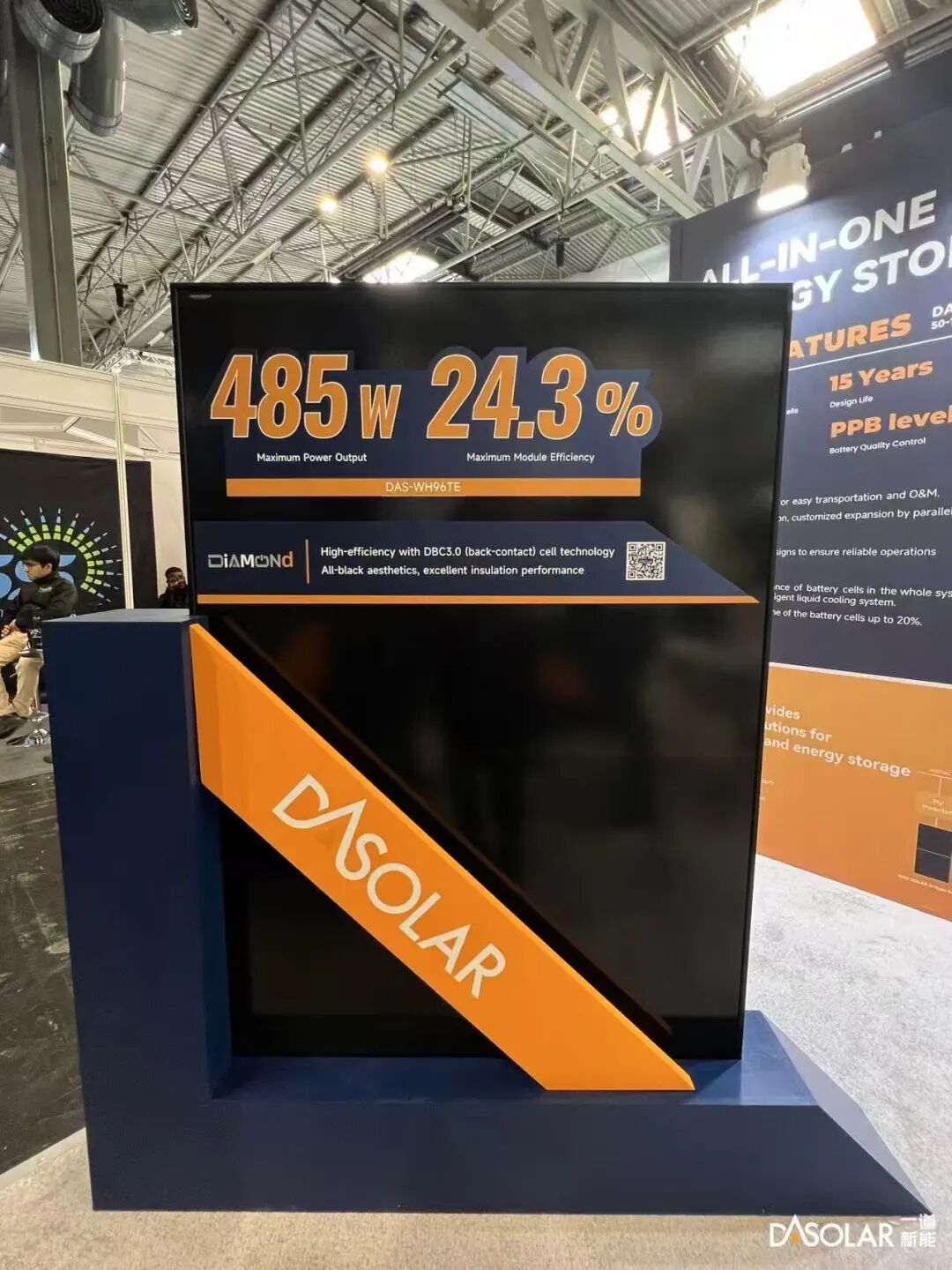 本次重点展出的475W DBC高效组件深度融合了TOPCon 5.0隧穿层技术与全接触钝化方案,实现了技术攻关领域的重大突破。组件正面无栅线的独特设计能有效避免正面栅线对光的遮挡问题,极大地提升电池的转换效率,当前,一道新能DBC 3.0 Plus电池效率成功超越27.77%,开路电压达745.7mV,组件功率突破670W,效率达24.3%,在细分场景需求中实现全生命周期最优综合发电量。同时,DBC组件全黑美学设计优雅融入建筑外观的同时能广泛适用于分布式项目,契合英国地区高端户用项目的美学需求。