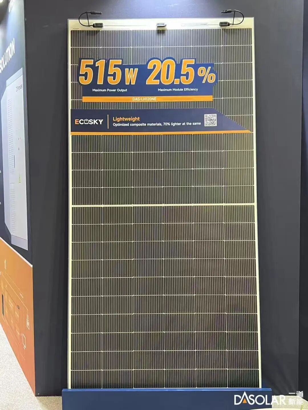 当前,英国设定了8-10GW户用光伏发展区间,较当前2.5GW基础增长300%以上,预计每年新增安装量突破50万户。针对英国地区户用光伏发展蓝海,本次展出的515W ECOSKY轻质组件轻质组件凭借其超轻量化优势,组件重量仅为4.7Kg/㎡,相同功率下组件重量可降低50%以上,可轻松适配各类屋顶结构,大幅降低安装门槛与成本。此外,该组件具备高效发电性能与抗湿热、抗盐雾特性,确保了长期的稳定收益。