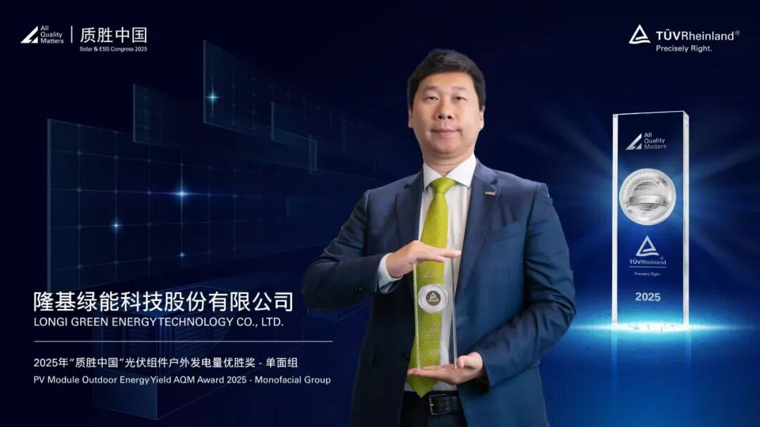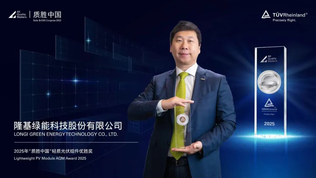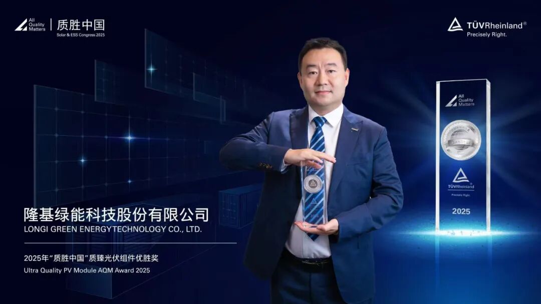 9月24日,由德国莱茵TÜV集团(以下简称“TÜV莱茵”)主办的2025“质胜中国”光储盛典颁奖典礼在江苏常州隆重召开。隆基BC二代组件Hi-MO 9以其无可挑剔的至优产品质量和“零短板”的完美发电表现夺得“质臻光伏组件”大奖。聚焦分布式场景的Hi-MO X10轻质组件、Hi-MO X6 Max单玻防积灰组件,则分别斩获“轻质光伏组件”、“光伏组件户外发电量”优胜奖。至此,隆基已连续九年获得“质胜中国”光伏组件类优胜奖项。