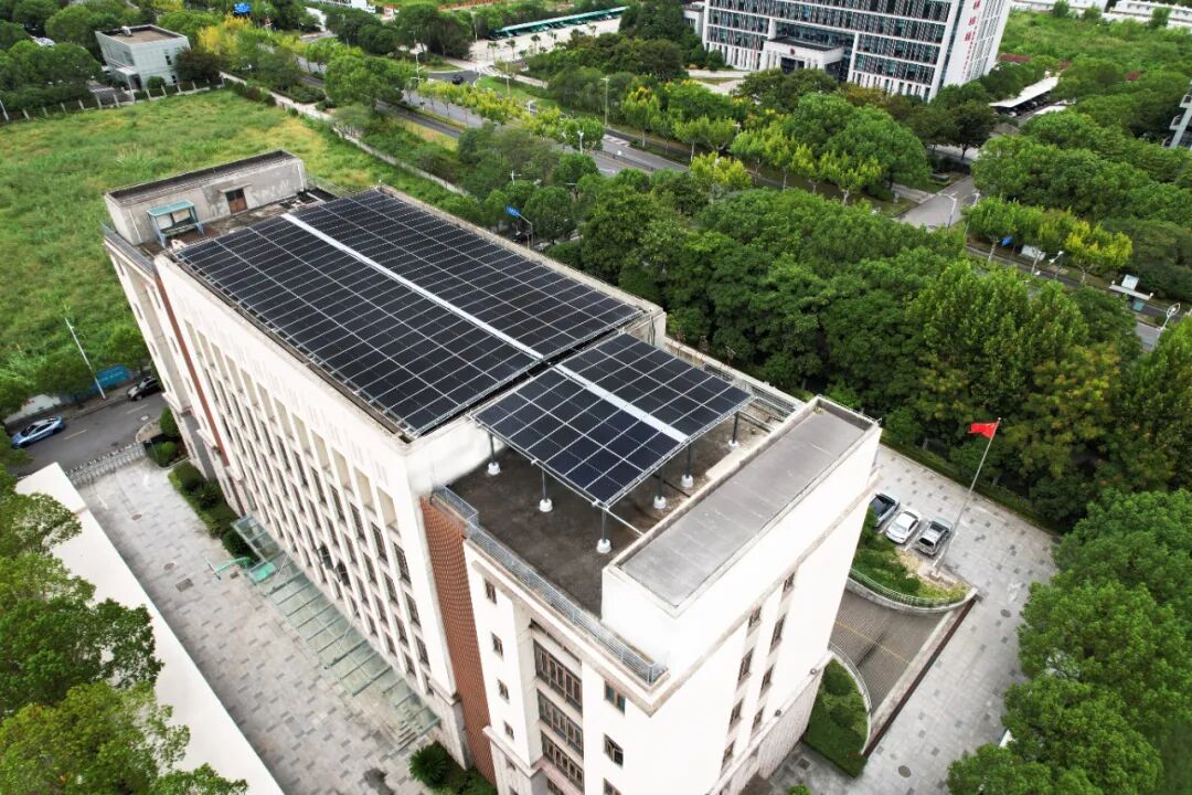 该项目位于上海市奉贤海关所在地,充分利用海关办公区屋顶资源,采用“自发自用、余电上网”模式,建设内容包括分布式光伏电站、储能系统及充电设施。项目共安装晶澳单晶高效630Wp组件166块,直流侧装机容量104.58kW,交流侧装机容量100kW,配套建设3台充电桩与1套100kW/232kWh储能柜,通过1个并网点接入海关0.4kV A段母线,形成光储充协同运行的智慧能源微网系统。