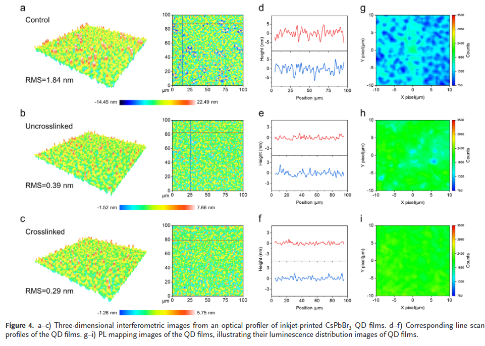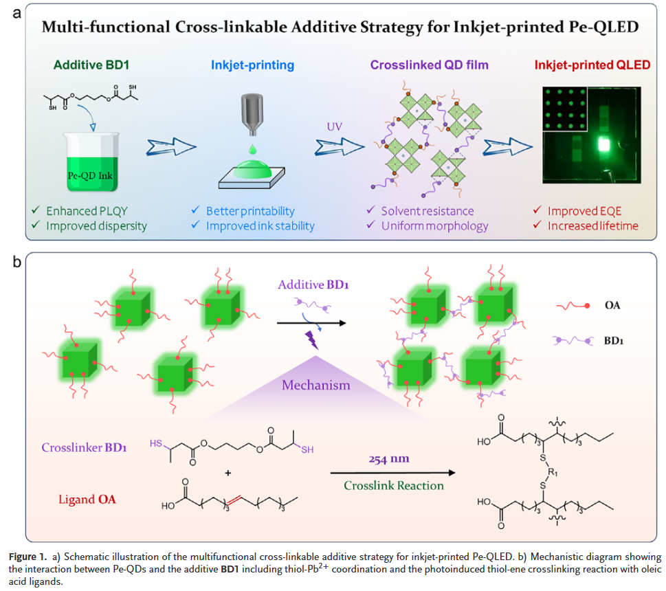 W. Lu, Y. Wu, X. Li, et al. “ Multifunctional Dithiol Crosslinking Additive Enables Highly Efficient and Stable Inkjet-Printed Perovskite Quantum Dot Light-Emitting Diodes.” Adv. Mater. (2025): e15555.