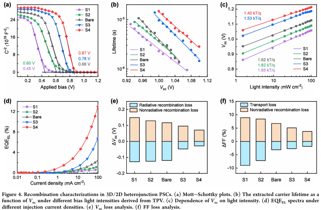 3D/2D异质结中的能带失配是导致该类钙钛矿太阳能电池发生非辐射复合的重要原因之一。