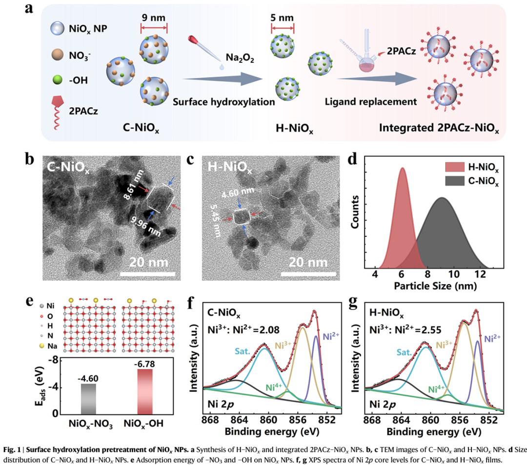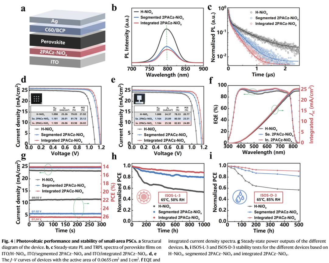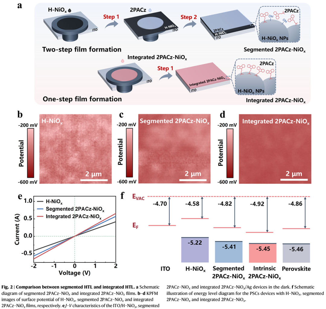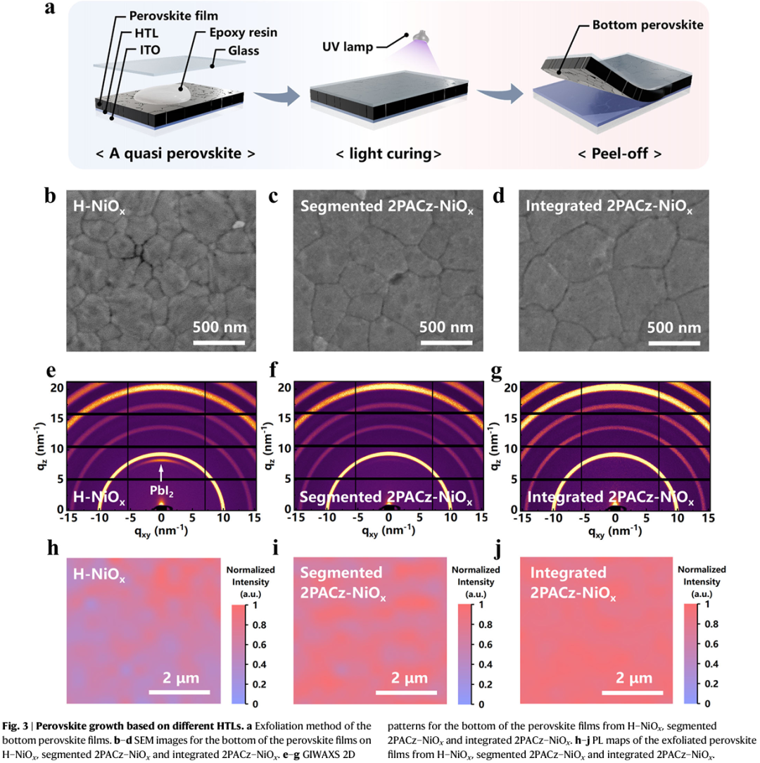 - 原位集成HTL策略:在NiOₓ合成过程中实现SAM分子原位锚定,显著增强界面附着力与薄膜均匀性,解决了传统分段式HTL在大面积制备中的不均匀与脱附问题。
