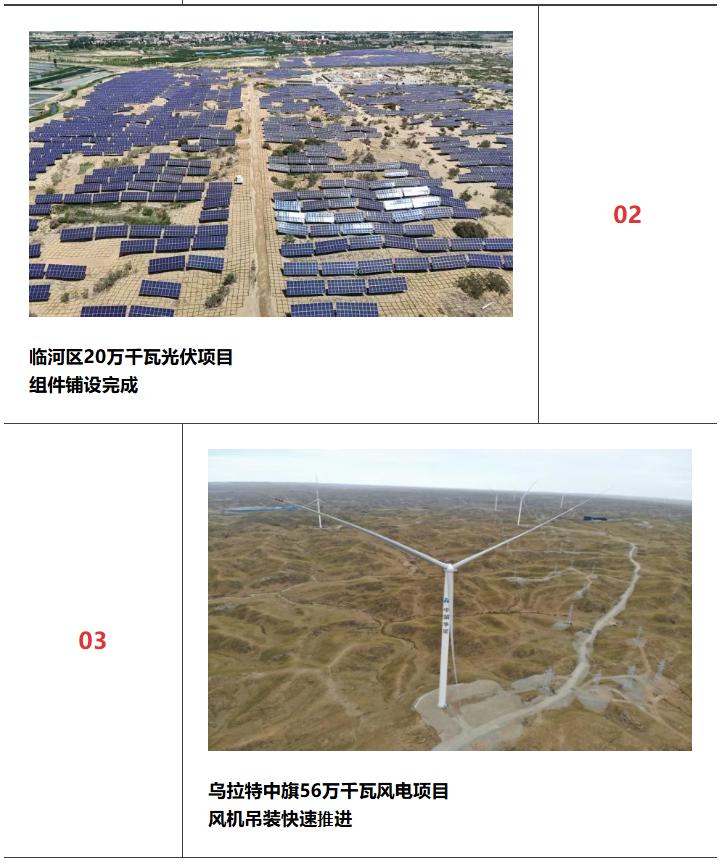 项目参建职工迎风沙、战酷暑、斗暴雨,与时间赛跑,同困难较量。党员攻关组、青年突击队的身影穿梭在每一个工作面,一片片光伏蓝海在沙海中铺展,一座座风机基座拔地而起,乌拉特后旗44万千万光伏项目全容量并网发电,临河区20万千瓦光伏项目组件铺设完成;乌拉特中旗56万千瓦风电项目风机调转完成75%,彰显蒙西分公司勇于攀高的“新能源速度”。