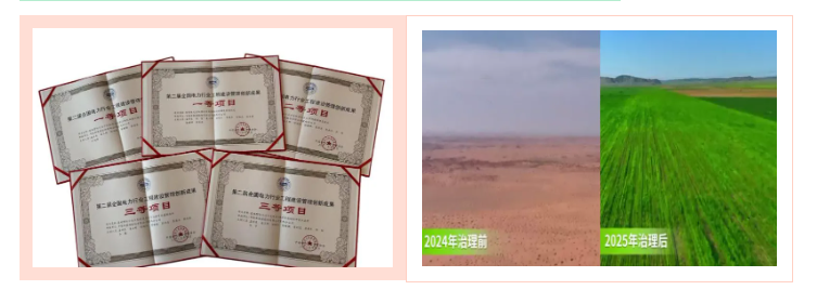 项目参建青年职工将竞赛中涌现的“金点子”转化为提质增效的“金钥匙”,在2025年全国新型电力系统设备工程建设高质量发展经验交流会暨电力行业设备工程建设创新成果项目发布会上,斩获5项奖项。通过新型沙障、节水灌溉、乡土草种修复等技术创新,构建了“发电+治沙+生态修复”的多元协同模式,为新能源工程与生态保护协同发展提供了可复制的“蒙西方案”。