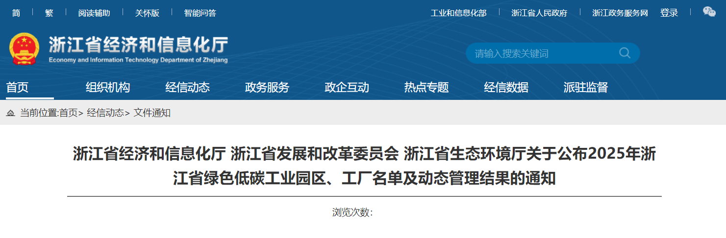 10月15日,浙江省经济和信息化厅、浙江省发展和改革委员会、浙江省生态环境厅联合公布2025年浙江省绿色低碳工业园区、工厂名单及动态管理结果,经各设区市经信局推荐申报、省级部门联审、公示等程序,确定温州湾新区等8家单位为省级绿色低碳工业园区、杭州炬华科技股份有限公司等150家企业为省级绿色低碳工厂,现予以公布。同时,对历年省级绿色低碳工业园区、工厂名单进行动态管理,并将变更情况予以公布。