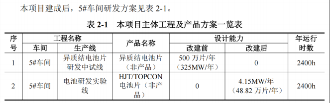 主要利用已停产的5#.车间(原15#.建筑物),对5#.车间内异质结“高效太阳能电池研发中试项目”进行改建,不涉及晶辉厂区其他车间的改变。
