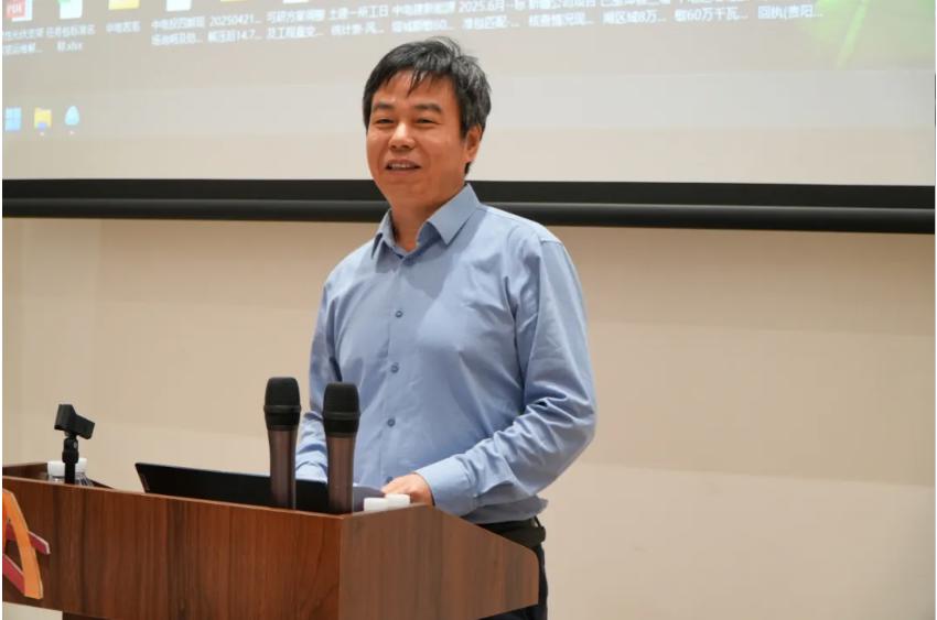 在会议上,中国电建集团西北勘测设计研究院有限公司田永进先生进行《规程》主讲和宣贯。他指出,《规程》的发布有望填补国内索结构光伏支架设计领域的空白,进一步促进索结构光伏支架技术的推广应用,对”光伏+”项目的开发建设有巨大的推动作用。