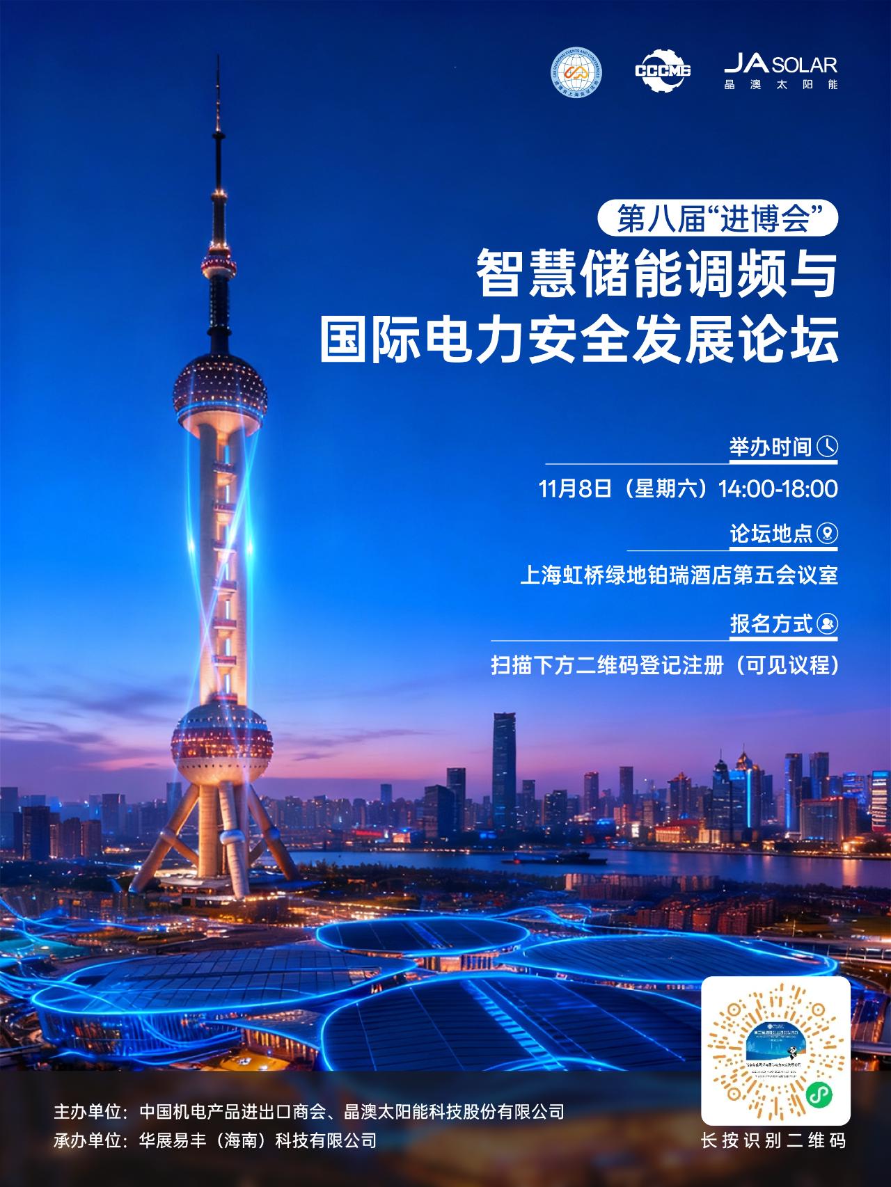 报名方式:扫描海报二维码登记注册(可见议程),报名注册截至日期为10月25日作为2025年中国国际进口博览会的重点配套活动,本届论坛以“智慧储能调频与国际电力安全发展”为主题,将汇聚60余位企业高管、行业专家及政府代表,深入探讨智慧储能调频技术、国际电力安全合作前景及金融支持模式等核心议题。