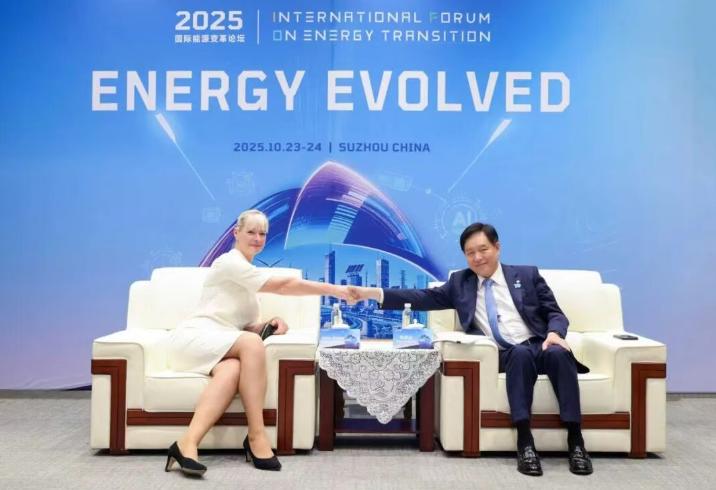 10月24日,2025国际能源变革论坛在江苏苏州举办期间,全球绿色能源理事会主席、亚洲光伏产业协会主席、协鑫集团董事长朱共山,与世界能源理事会总干事安吉拉・威尔金森博士举行会晤。双方立足全球能源治理与可持续发展大局,围绕能源组织合作、国际能源项目推进及清洁能源与地区间和平等话题交换意见。