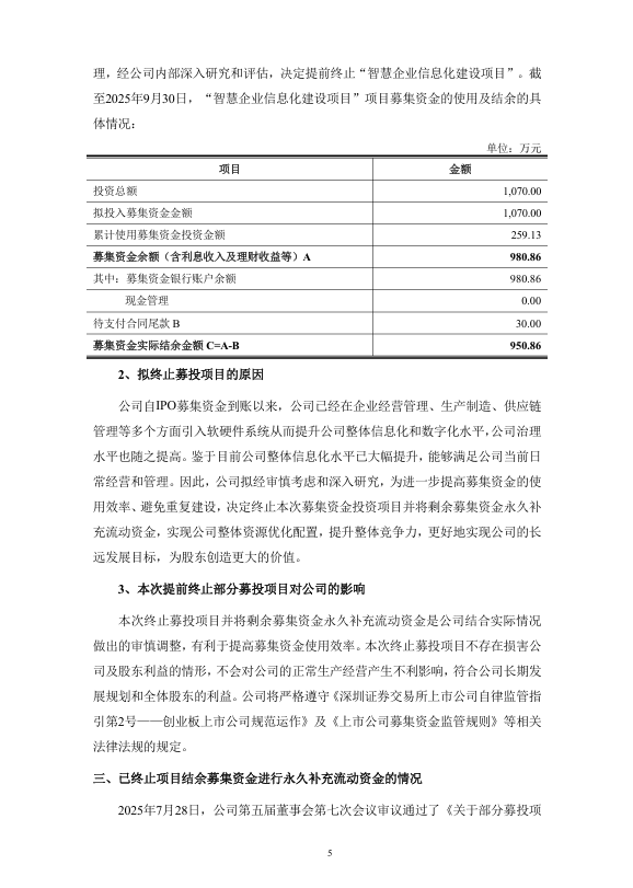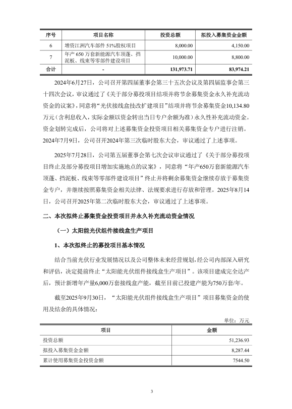 公告显示,该募投项目原计划打造年产能6000万套的光伏接线盒生产线,总投资规模未披露。截至目前仅完成750万套/年产能建设,不足规划产能的13%。据公司2025年三季报数据,截至9月30日,该项目募集资金累计投入金额、结余金额等核心财务数据虽未公开,但终止后剩余资金将直接用于补充日常经营现金流。