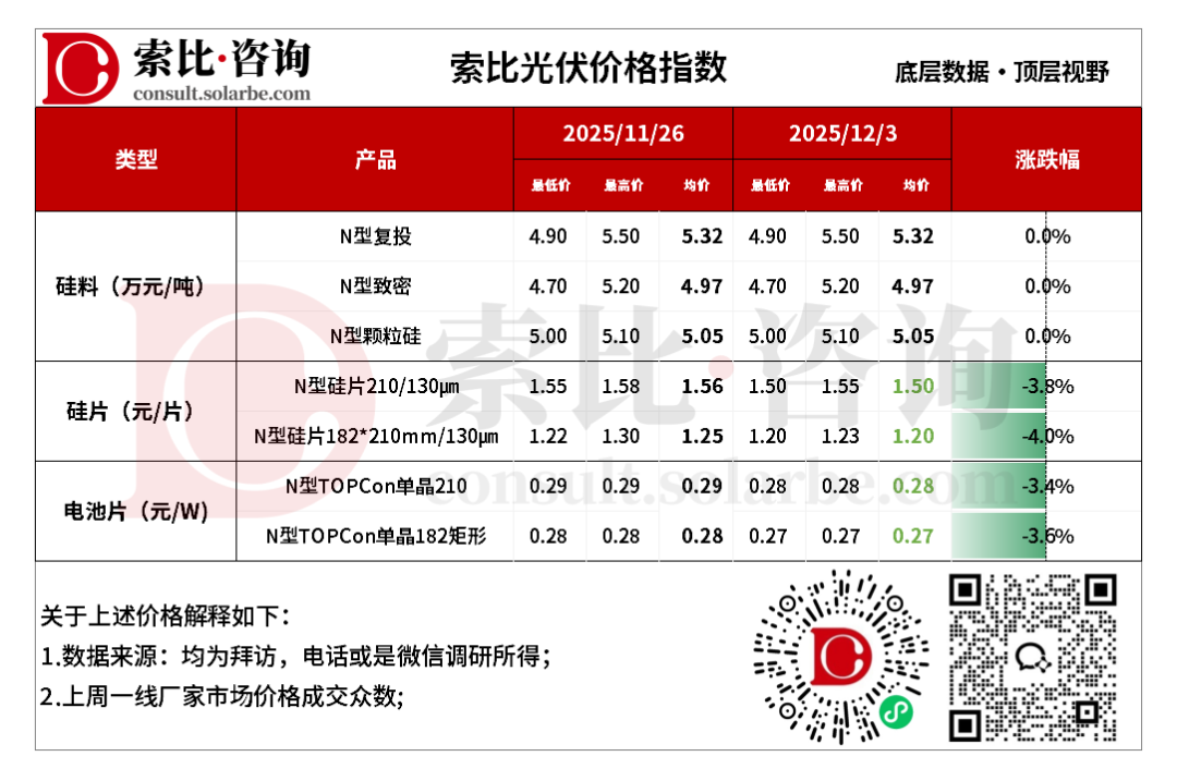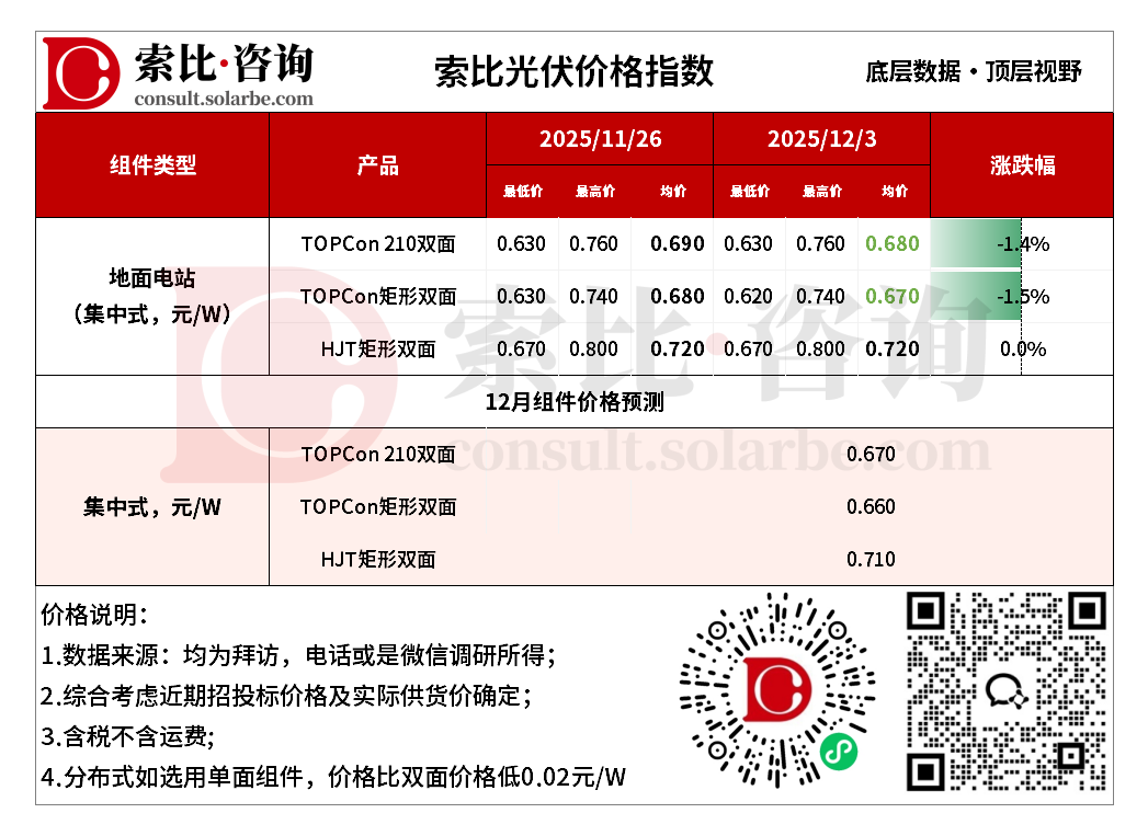1、数据均为索比咨询整理,价格为均价,有疑问请联系我们,欢迎探讨