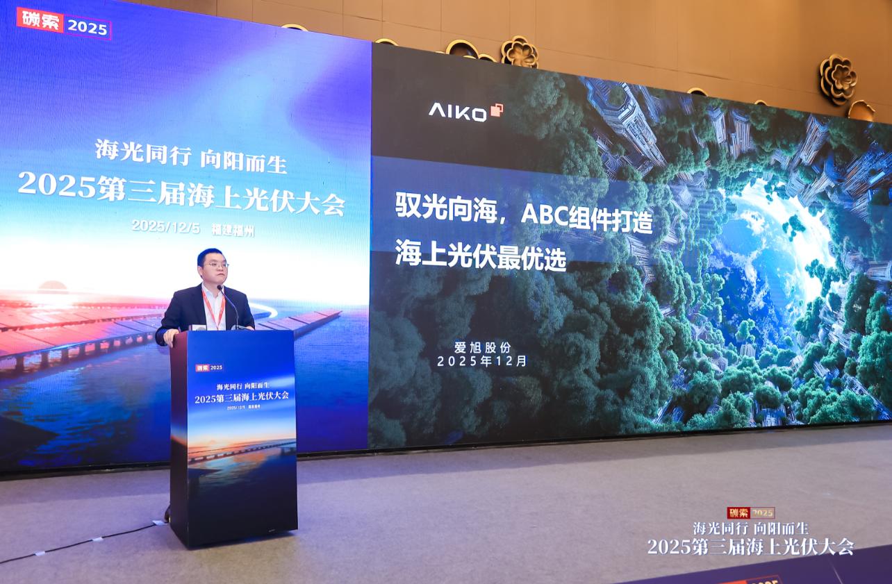 12月5日,由中国能源研究会新能源智能制造与应用技术专委会、中国电力工程顾问集团西北电力设计院、福建永福电力设计股份有限公司、索比光伏网联合主办的2025第三届海上光伏大会在福建隆重召开,爱旭股份中国区集中式高级客户经理徐云洲带来了《驭光向海,ABC组件打造海上光伏最优选》主旨演讲。