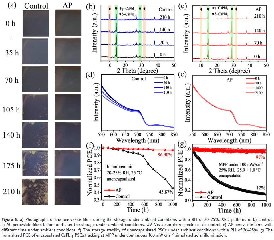 本工作证明了AP作为高效界面调控剂的有效性,并为稳定高效全无机PSCs的多功能分子工程提供了新思路。