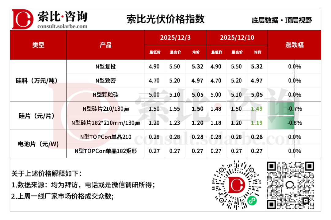 1、数据均为索比咨询整理,价格为均价,有疑问请联系我们,欢迎探讨