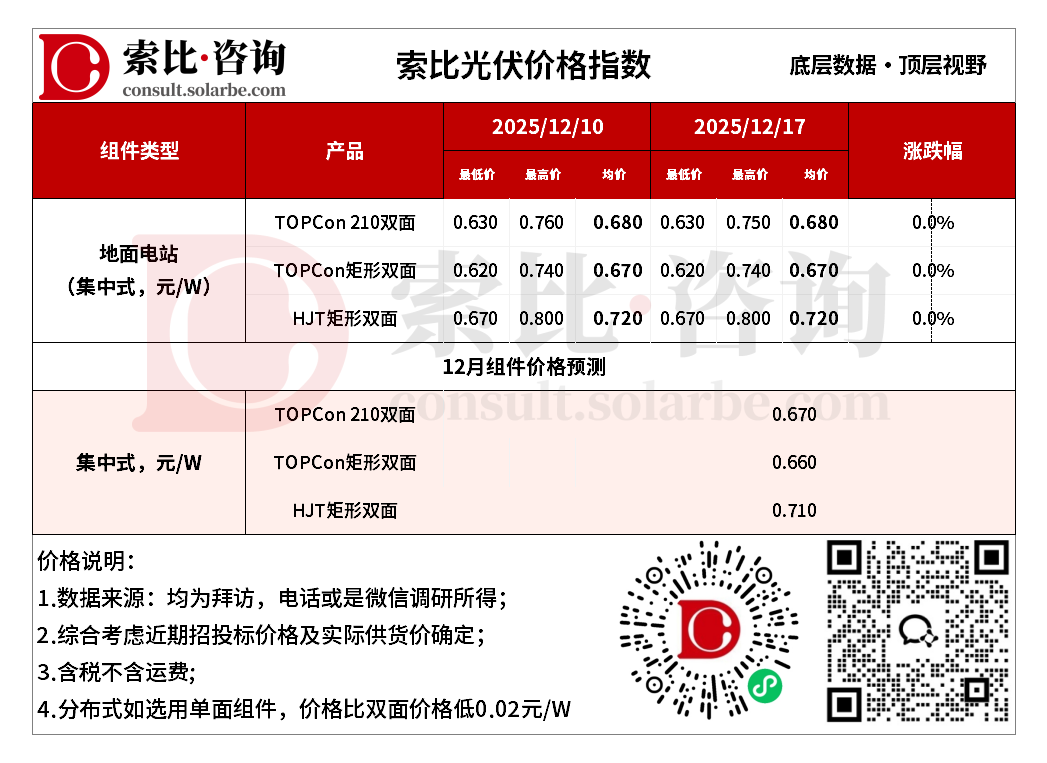 供应方面,12月初的行业自律会议对市场信心有提振作用。同时,为应对需求淡季和库存压力,组件和上游的电池片、硅片企业已普遍计划或执行减产,仅头部企业排产略有上升,而其他大多数企业正在执行减产清库策略。