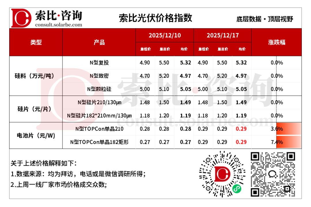 1、数据均为索比咨询整理,价格为均价,有疑问请联系我们,欢迎探讨
