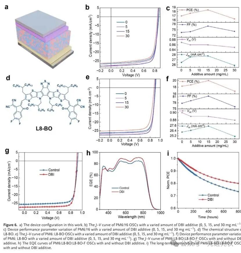 ✅高效与稳定兼得:在PM6:L8-BO:L8-BO-F三元体系中同时实现>20%效率与显著提升的光照稳定性,推动OSC向产业化迈进。