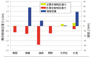 本图展示了德国最适合需求侧响应的工业用电大户的潜力,包括制铝、制氯、造纸、钢铁、水供应和水泥产业。
